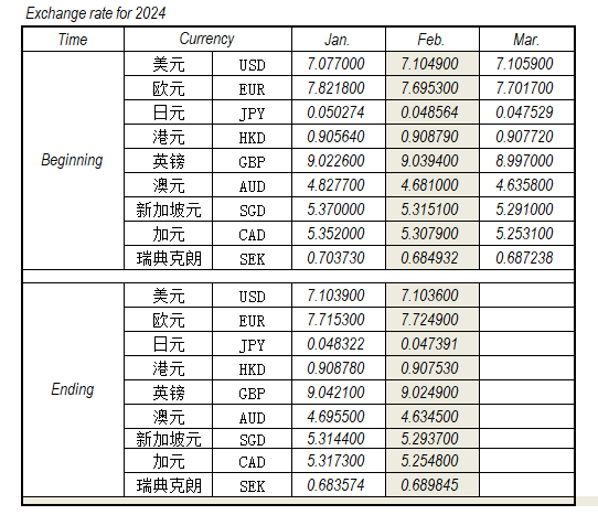 2024年2月外匯匯率,來源中國人民銀行供參考。
